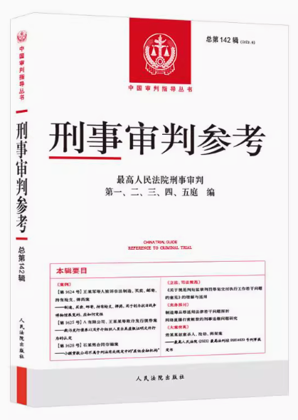 《刑事審判參考》是由最高人民法院刑事審判第一、二、三、四、五庭共同主辦的重要刑事司法業(yè)務(wù)指導(dǎo)從書。自2021年起,本叢書由最高人民法院直屬出版機(jī)構(gòu)一一人民法院出版社出版發(fā)行,作為“中國(guó)審判指導(dǎo)從書”的重要組成部分。