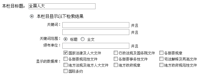 首先,用戶可以為每一個(gè)欄目設(shè)置一個(gè)標(biāo)題,比如欄目名稱設(shè)為“上海市地方性法規(guī)”