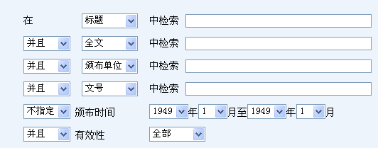 提供有:標(biāo)題、正文、頒布單位、文號(hào)、頒布時(shí)間、有效性及指定分類(lèi)等多種檢索方式。