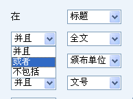 在每一個(gè)檢索字段條件下,都可以選擇一次邏輯組配,包括:并且、或者、不包括。其中,在“頒布時(shí)間”中包括有:不指定、并且、不包括。