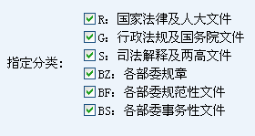 提供有:國(guó)家法律及人大文件、行政法規(guī)及國(guó)務(wù)院文件、司法解釋及兩高文件、各部委規(guī)章、各部委規(guī)范性文件、各部委事務(wù)性文件,而且支持多項(xiàng)選擇檢索。